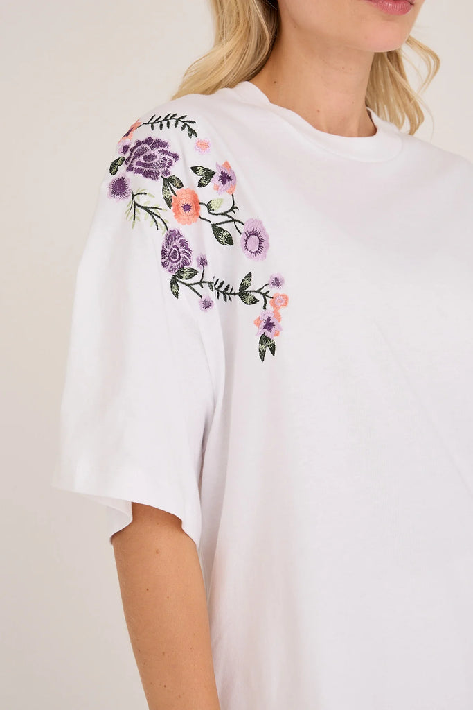 Best Fluschia Tee er en t-shirt med rund hals og kort ærme. T-shirten har et elegant blomsterbroderi på skulderen, der tilfører et feminint og dekorativt touch til det klassiske design.