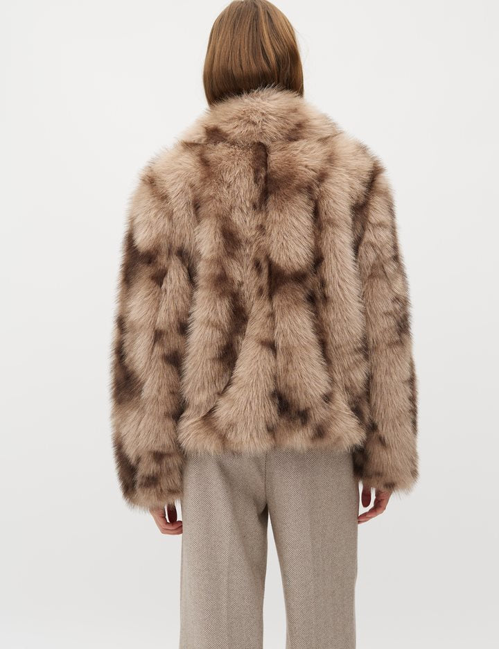 Faux fur jacket with collar. - Material: 100% Polyester - Closes in front - Side pockets - Collar - Loose fit The height of the model is 176 cm and she is wearing a size S.