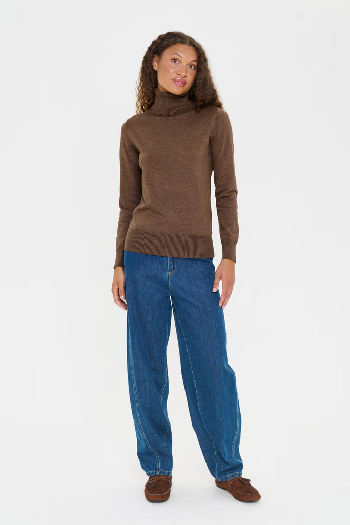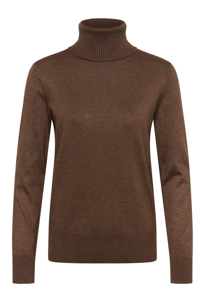 Brown turtleneck sweater with long sleeves and ribbed cuffs and hem. Designed in a regular fit with a smooth knit texture. Made from a soft, mid-weight fabric. The model is 179 cm tall and is wearing a size S.
