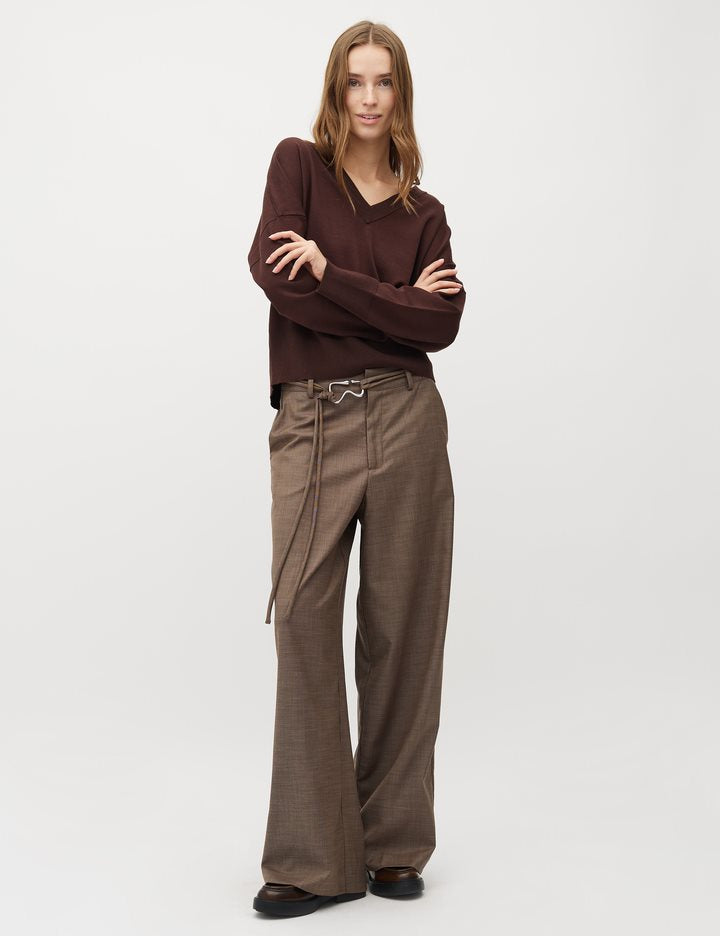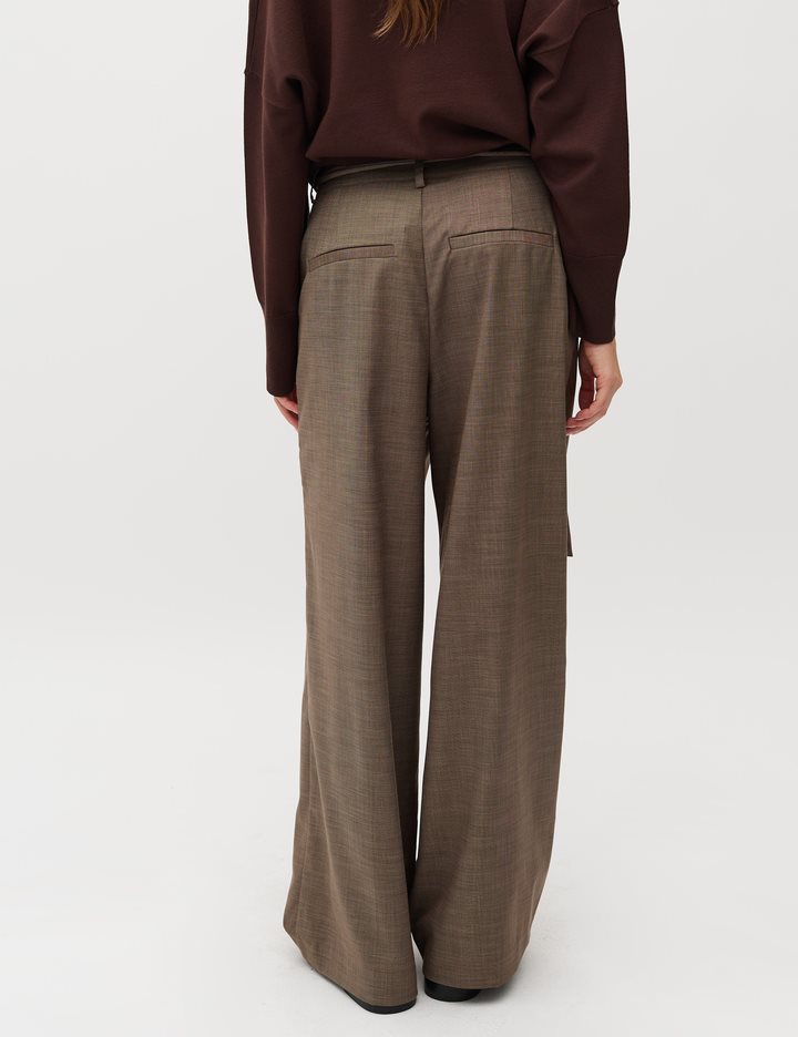 Wide pants with belt. - Material_ 83% Polyester, 15% Viscose, 2% Elastane - Back pockets - Loose fit - Side pockets - Matching belt - Wide legs The model's height is 176 cm and she is wearing size S.